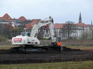 Bevor aber die ersten Kipper rollen können, sind weitere Vorarbeiten nötig. „Wir haben es zum Teil mit belasteten Böden zu tun, da spielt der Umweltschutz eine große Rolle“, sagt Heinz Hallier. Intensive Untersuchungen haben ein recht genaues Bild all der Stoffe ergeben, die hier im Untergrund liegen. Holz und Bauschutt sind darunter. Schließlich wurde hier in den 70er Jahren der Große Moor „entsorgt“. Auch Dachpappe wurde gefunden und sogar Hausmüll, der wahrscheinlich aus den 20er Jahren stammt. „Dieses Stoffgemisch können wir nicht einfach irgendwo hin fahren. Vorher muss es analysiert und sortiert werden“, sagt Heinz Hallier. Dafür wird gerade auf der ehemaligen Albert-Richter-Kampfbahn eine rund 5.000 qm große Fläche hergerichtet, die so abgedichtet wird, dass Schadstoffe nicht erneut in den Boden gelangen können. Dieser so genannte „schwarze“ Bereich wird streng vom „weißen“ Bereich, also der Straßenumgebung, getrennt. An der Übergangsstelle wird eine Reifenwaschanlage installiert, um zu verhindern, dass die Fahrzeuge Schadstoffe verschleppen.